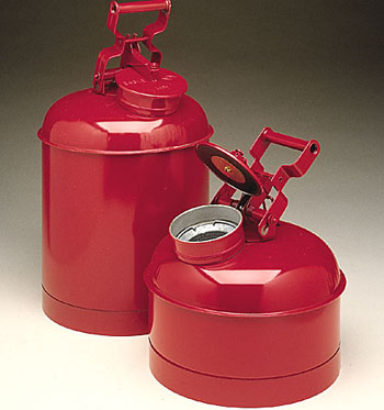 Construction: The 4"-dia. pour spout locks open for easy filling. Integral flame arrestor and pressure relief cap included. Not recommended for aggressive solvents or hydroxides.